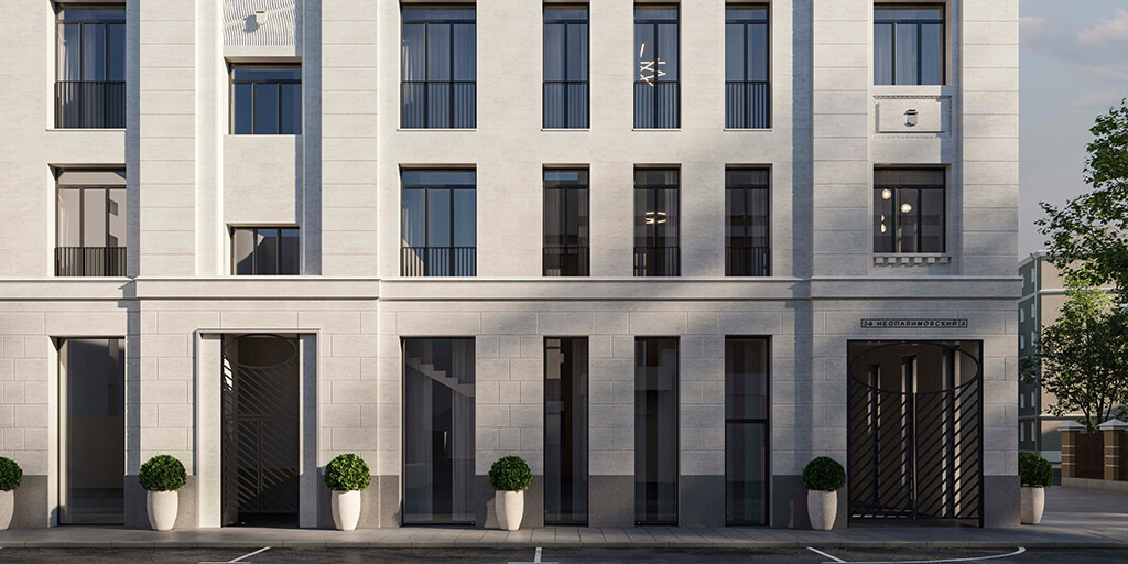 Дизайн здания отличается пропорциональностью, элегантностью и утончённостью: французские балконы, высокие окна и детали фасада добавляют архитектуре аристократичности и открывают виды на внутренний сад. Высокие потолки создают ощущение воздуха и простора, а архитектурные линии поддерживают баланс между декоративностью и минимализмом.
