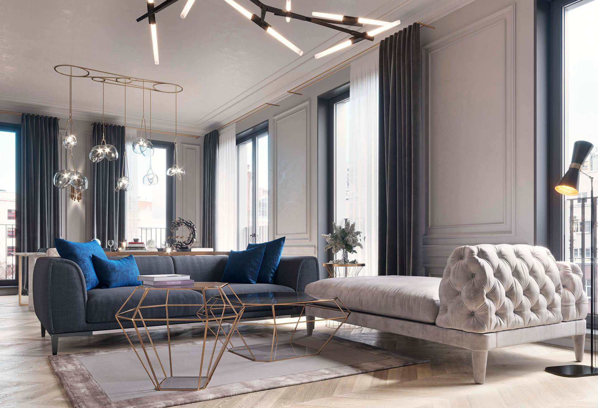 Квартиры в HIGH GARDEN — это воплощение эксклюзивного жилья делюкс-класса. Площади варьируются от компактных 78 м² до просторных резиденций в 400 м². Высота потолков — 3,4–3,6 м, что создаёт ощущение объёма, лёгкости и простора. Каждая квартира имеет чёткое зонирование: гостевые и приватные зоны разделены логикой планировки, что обеспечивает комфорт и функциональность.